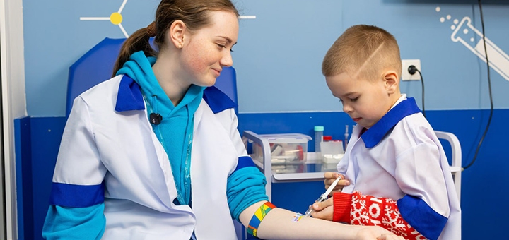 Kidlandia has 50 gaming stations (fire department, police, television, radio station, hospital, supermarket, art school, pizza school, beauty salon), more than 100 professions (doctor, salesman, dentist, presenter, pilot, photo operator, car racer) . Here, your child will not only broaden his horizons, but will reveal his talents and can even decide on his future profession by choosing his favorite business.
