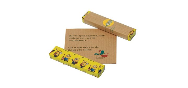 Кількість написів налічує понад 1500 різних побажань – ймовірність, що ви двічі натрапите на одне й те ж послання мізерна. Оформлені передбачення на крафтовому папері двома мовами: українською і англійською. Оригінальний дизайн наборів стане доречи, якщо ви намірилися піднести такий шоколад близькій вам людині у вигляді подарунка.