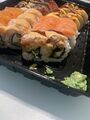Роллы вкусные , свежие , доставили быстро , но есть небольшой нюанс на некоторых кусочках , но к счастью таких мало )